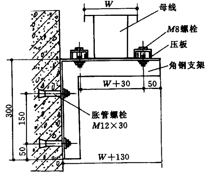 4.5封閉式母線垂直安裝。沿墻或柱子處,應(yīng)做固定支架,過(guò)樓板處應(yīng)加裝防震裝置,并做防水臺(tái)(圖7)。