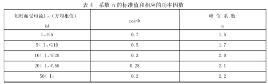母線槽的額外峰值耐受電流是指在規(guī)矩的實驗條件下,母線槽能耐受的電流峰值。其值為表5.4中的短時耐受電流(方均根值)與系數(shù)n的乘積。