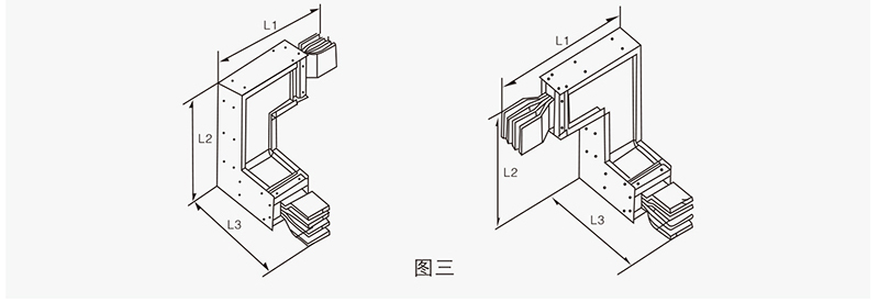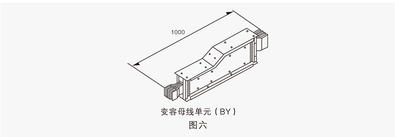 變?nèi)菽妇€主要用于同一系統(tǒng)中不同額定電流單元的連接,以使整個(gè)母線槽系統(tǒng)更加經(jīng)濟(jì)實(shí)用。其標(biāo)準(zhǔn)長(zhǎng)度為1000mm,也可根據(jù)用戶要求定制尺寸。見圖六