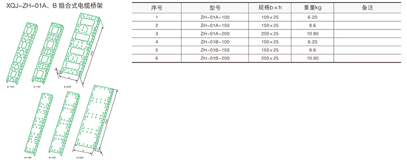 組合式電纜橋架的組裝形式見表一。