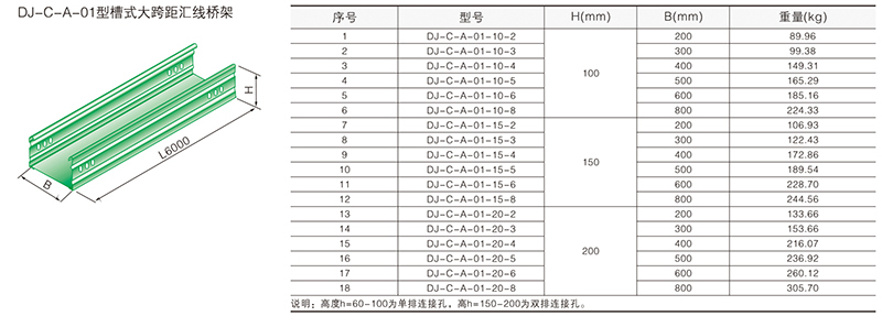 大跨距橋架分梯級式、槽式、托盤式三種型號。A型、B型二種類別,支撐間距為6m,當跨距大于6m時可接受特殊訂貨。
