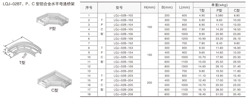 LQJ-02BT、P、C型鋁合金水平彎通橋架